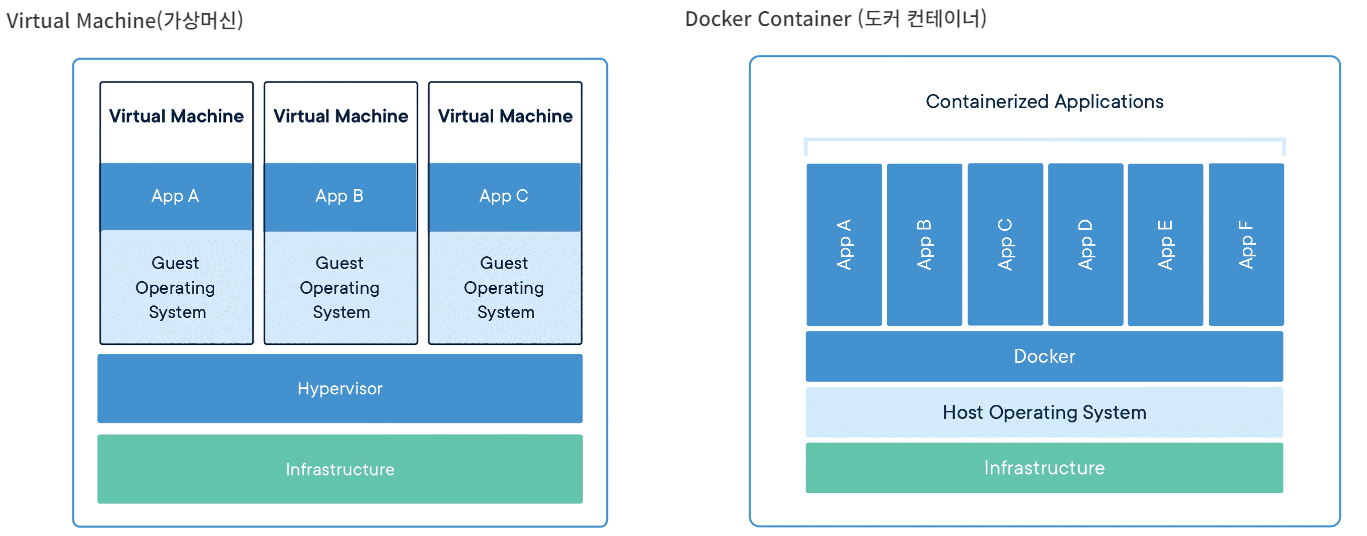 - Docker없이 linux ubuntu OS, window OS 가 동시에 요구되는 경우, 불필요한 물리적 자원이 요구됨