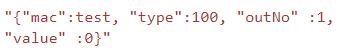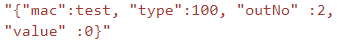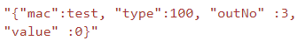 '{\"mac\": test' + ", \"type\":100" + ", \"outNo\" :1" + ", \"value\" :0" + '}',