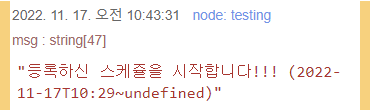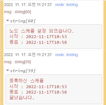 node.warn("등록하신 스케쥴\n시작 : " + start + '\n종료 : ' + end + '\n끝났습니다.');
