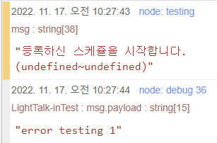 node.warn("등록하신 스케쥴\n시작 : " + start + '\n종료 : ' + end + '\n끝났습니다.'); 추가