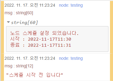 node.warn( "스케쥴 시작 전 입니다"); 추가