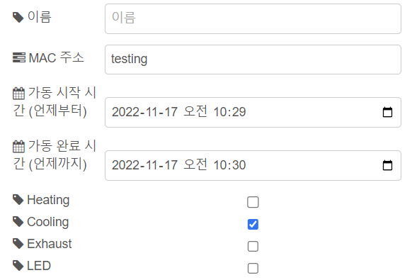위와 같이 노드를 설정한다. 시작시간, 종료시간, Cooling 기능 체크.