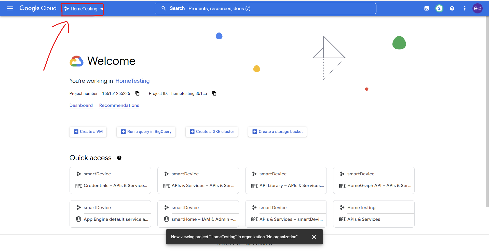 1. Google Action에서 생성했던 프로젝트를 선택