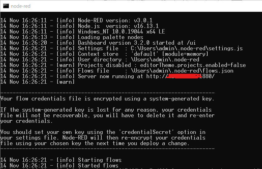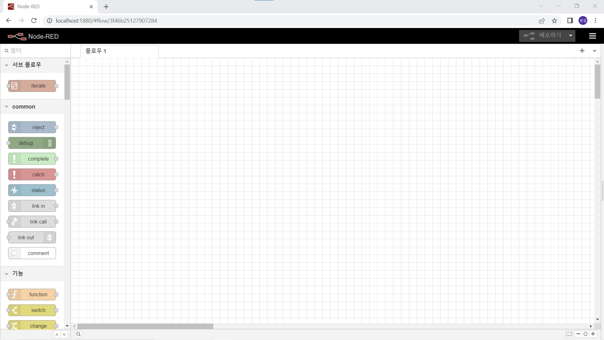 위와같이 정상적으로 Node-red 설치 및 실행 확인