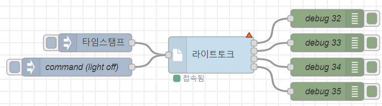 - 노드 하단에 초록색 박스 및 '접속됨' 메시지 출력.
