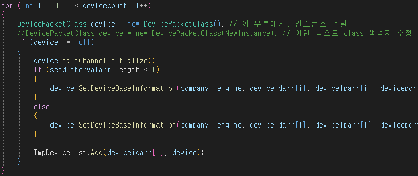 인스턴스가 필요한 DevicePacketClass가 매번 new 되기 때문에