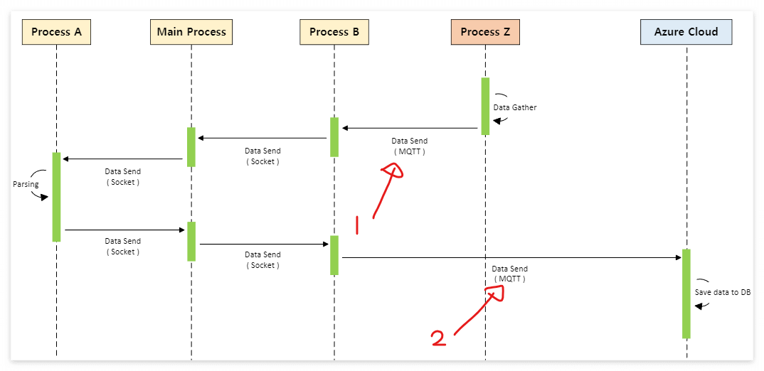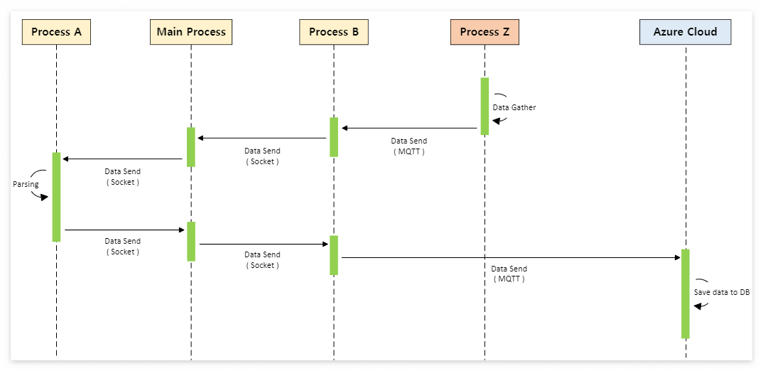 Process A, Main Process, Process B 는 하나의 exe 내 프로세스다.