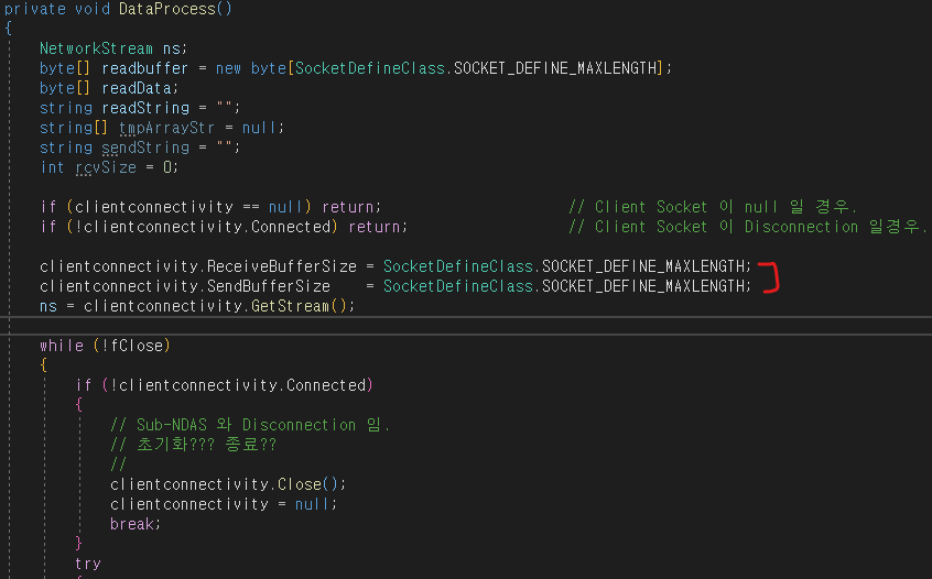 ReceiveBufferSize와, SendBufferSize를 다시 꼼꼼히 확인해봤다.