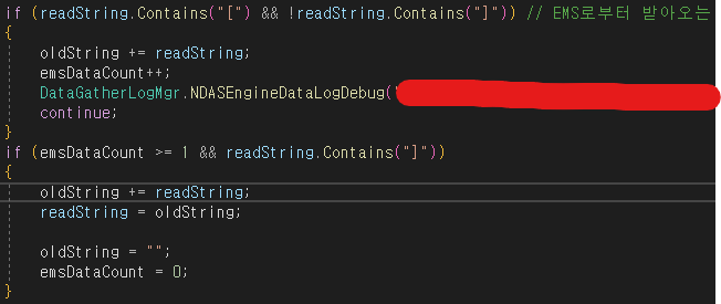 1.데이터 수신 후, " [ " 가 있고, " ] " 가 없음 ( 데이터가 잘림 ) 을 확인